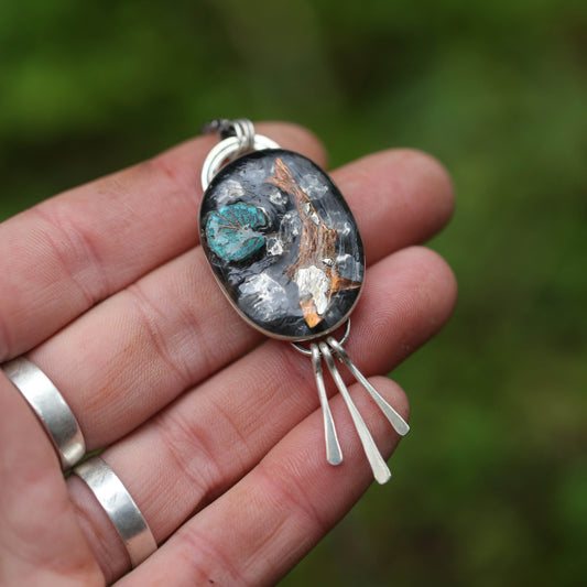 Koi Pond Sterling Silver and Copper Resin Pendant