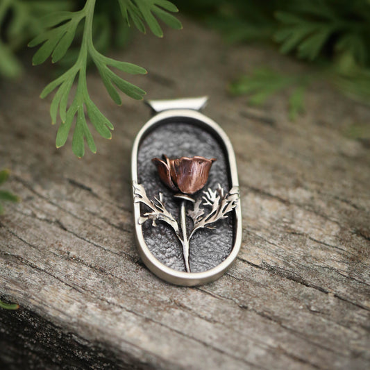 Porcini's Bounty Sterling Silver and Brass Mushroom Necklace