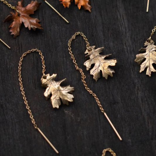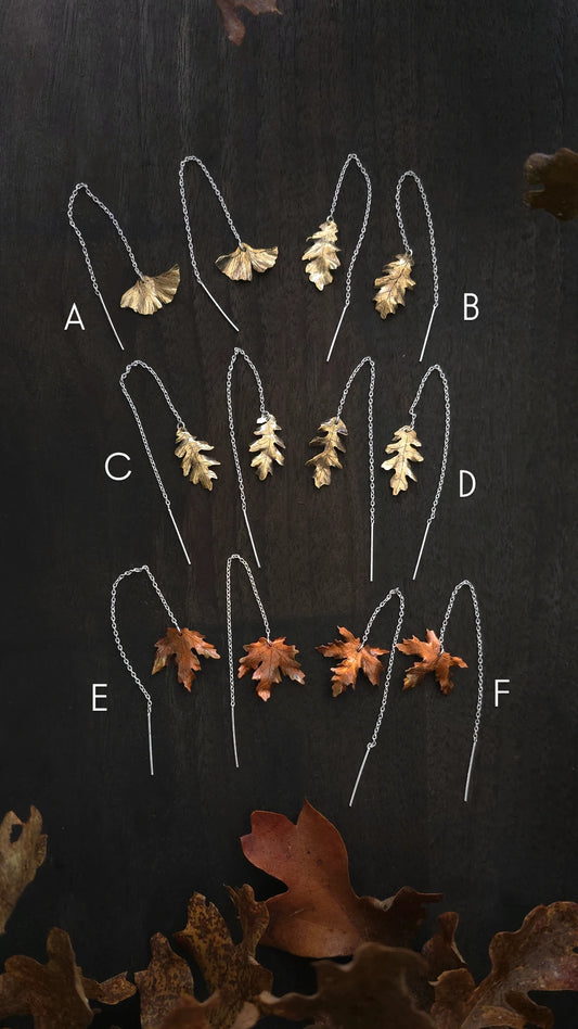 14k Gold, Copper, and Brass Woodland Leaf Ear Threaders