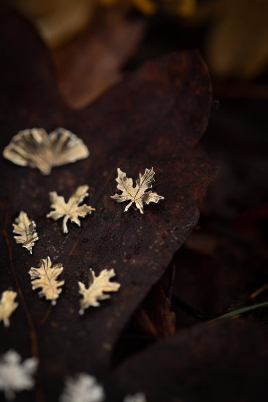 Woodland Stud Leaf Earrings in Sterling Silver