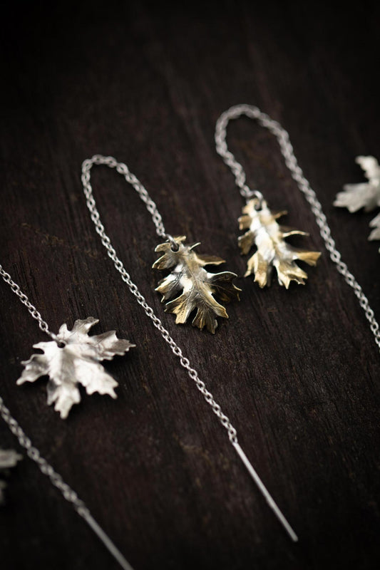 Sterling Silver and 24k Gold Woodland Leaf Ear Threaders