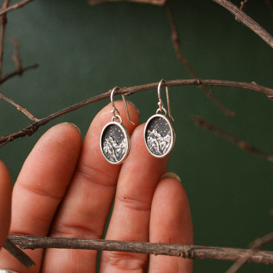 Oval New Moon Standard Miniscape Earrings - Silver & Bronze