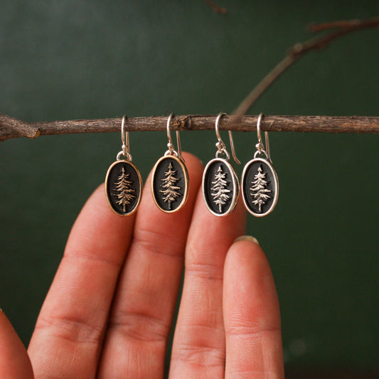 Oval Lone Pine Standard Earrings - Silver & Bronze