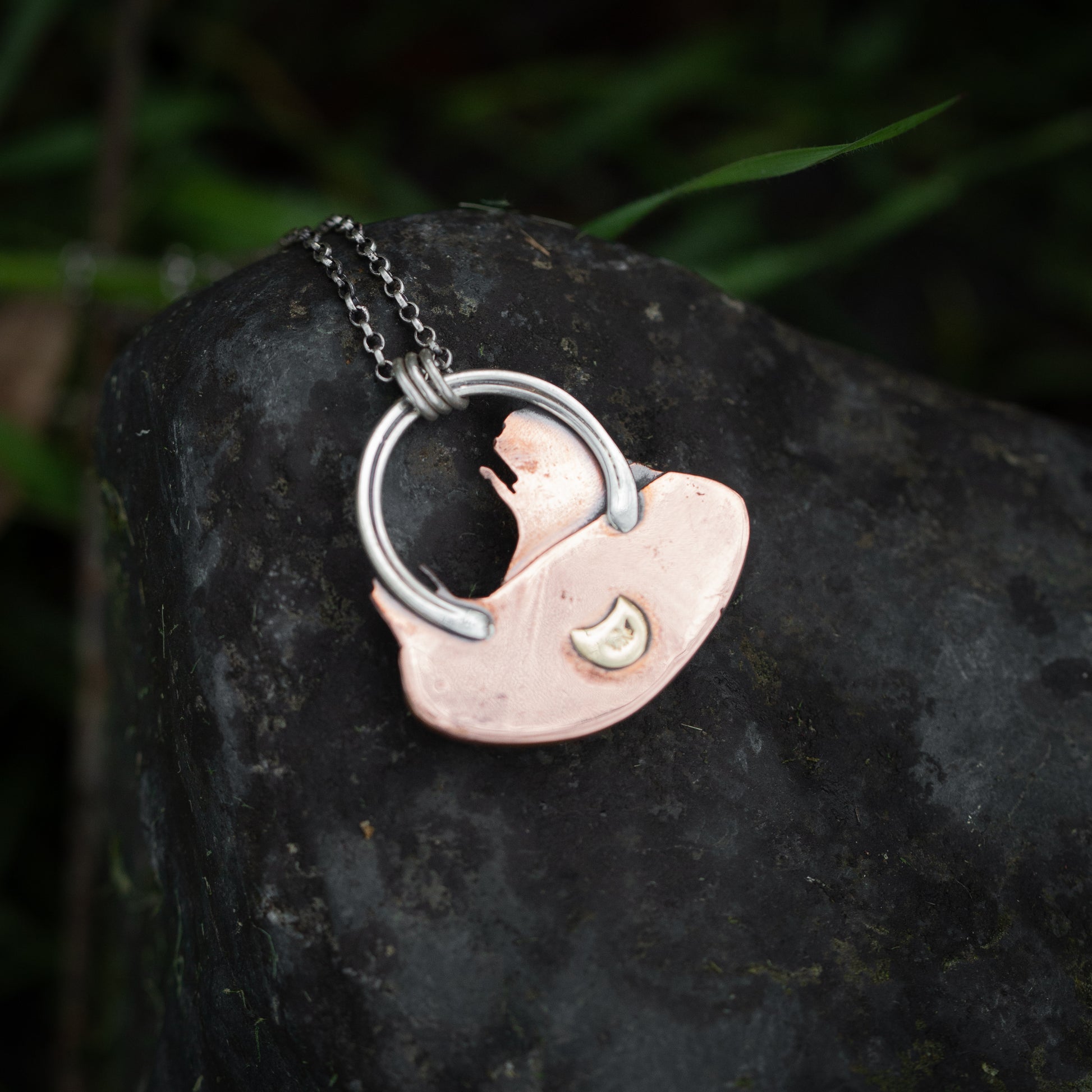 - This necklace is made from copper and sterling silver and features a natural free form stone